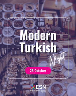 Join us for Modern Turkish Night, where traditional meets contemporary — with Turkish music, dancing, food, and fun all night long!